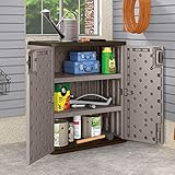 Suncast - 9 cubic feet of stylish and functional garage storage Durable and stylish resin construction resists scratches dents and rust Safely store up to 75 pounds on each shelf Padlock ready doors padlock not included 2 shelves included