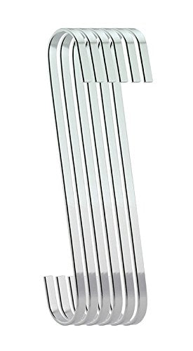 RuiLing 6-Pack 8 Inch S Flat Hooks Chrome Finish Steel Hanging Flat Hooks - S Shaped Hook Heavy-Duty S Hooks, for Utensils,Plants,Towels,Gardening Tools,Clothes