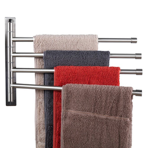Swivel Towel Bar for Bathroom, 14-Inch Swing out Towel Rack Stainless Steel Quadruple Towel Holder Organizer with 4-Arm, Wall Mounted Swing Arm Towel Shelf for Shower Kitchen Storage, Brushed Finish